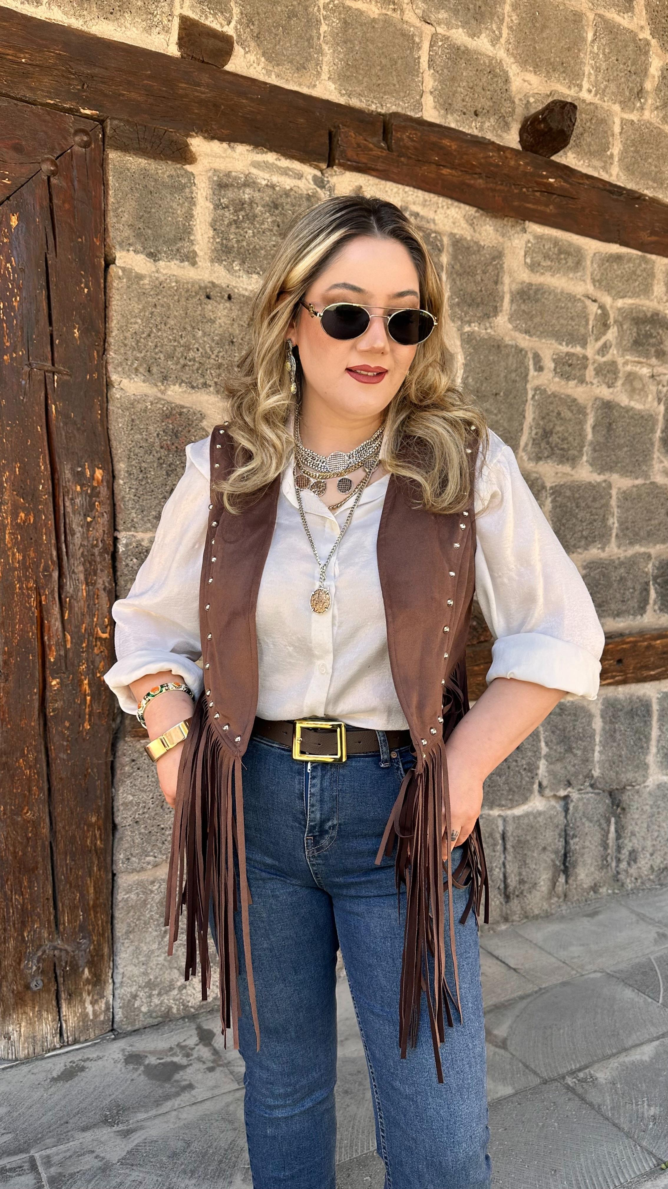 DROP DETAYLI PÜSKÜLLÜ NUBUK YELEK KAHVE
