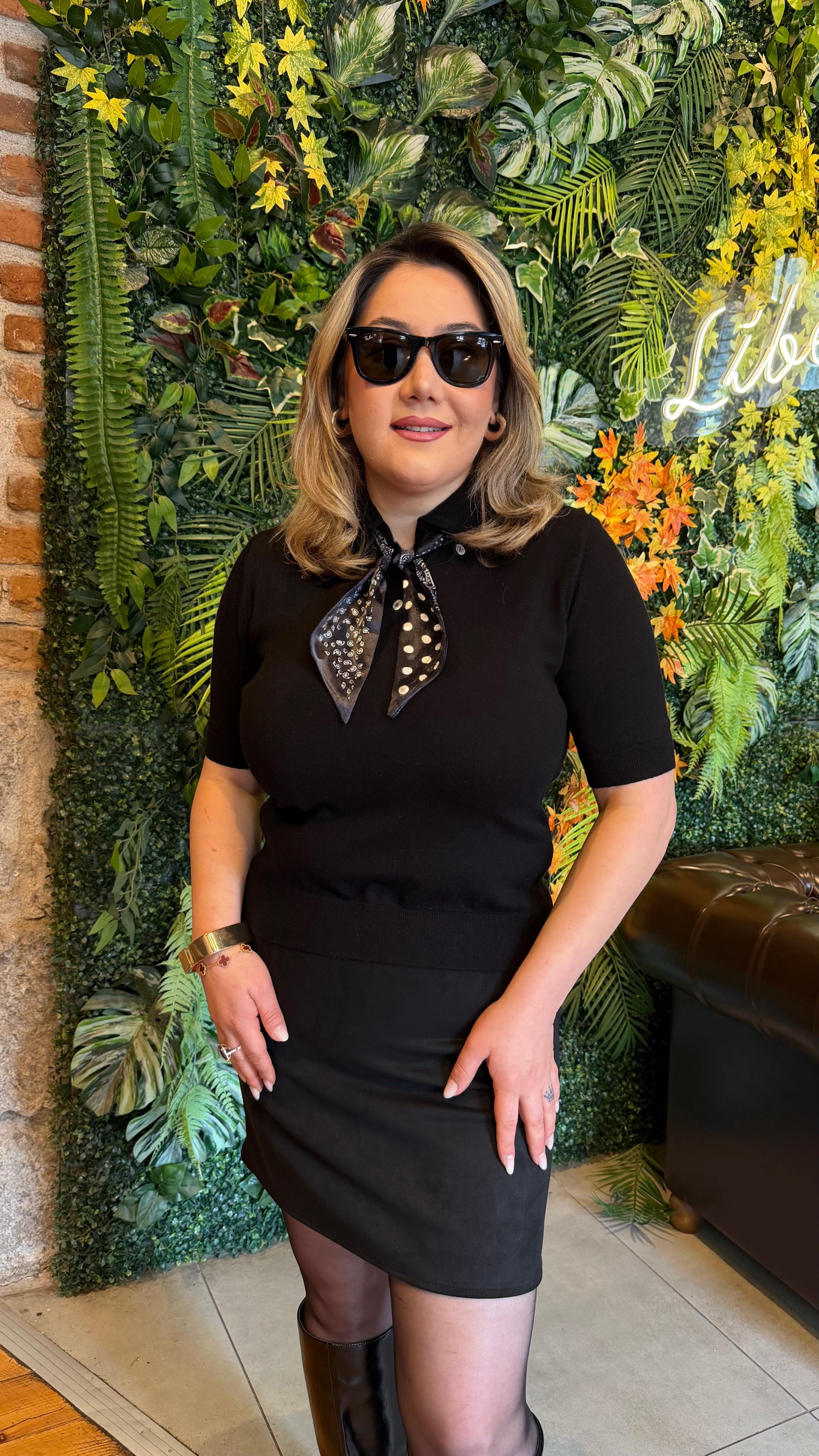 FULARLI POLO YAKA KISA KOL TRİKO KAZAK SİYAH