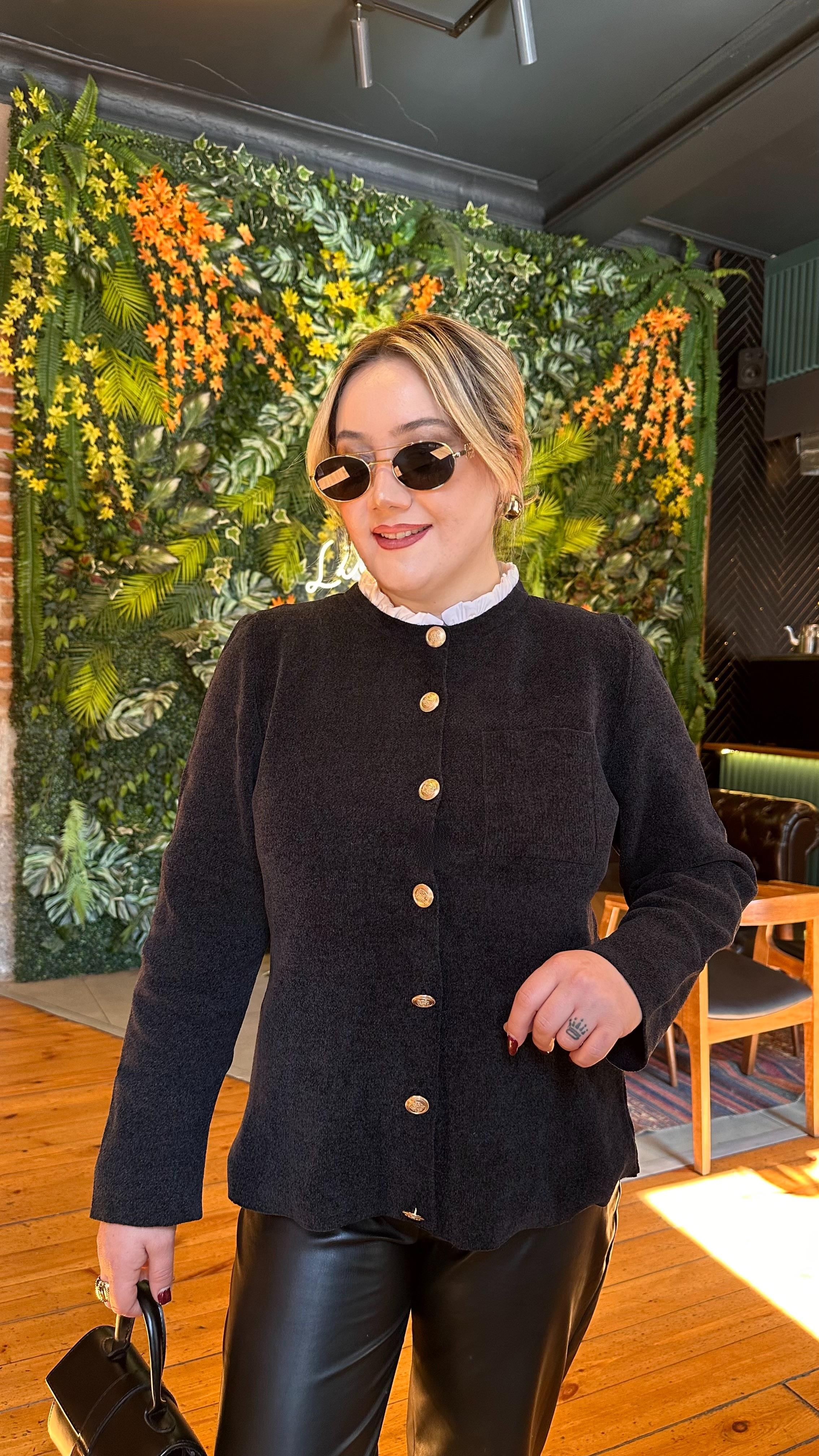 GÖMLEK YAKALI GOLD DÜĞMELİ HIRKA SİYAH