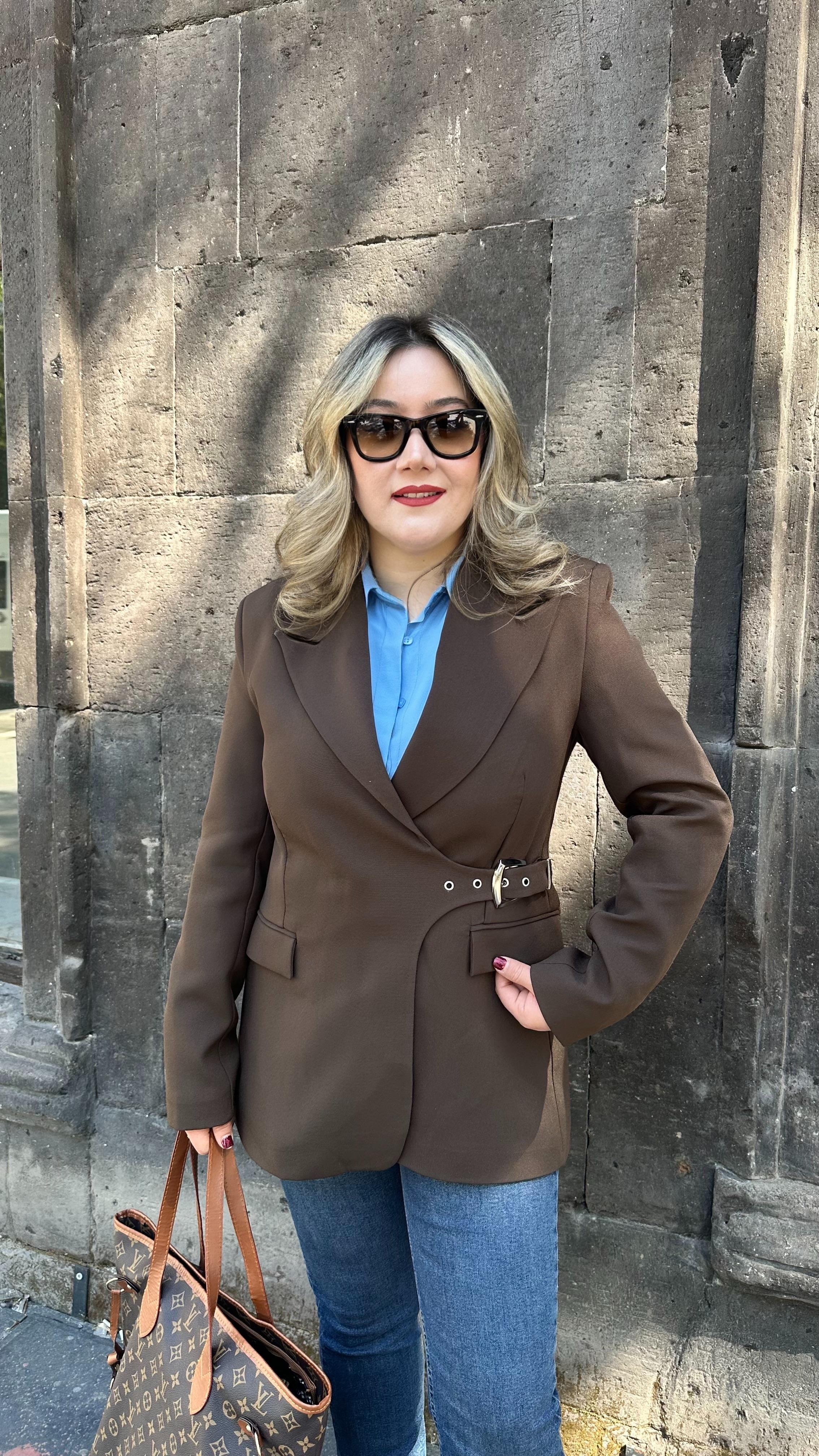 KEMERLİ KRUVAZE BLAZER CEKET ACI KAHVE