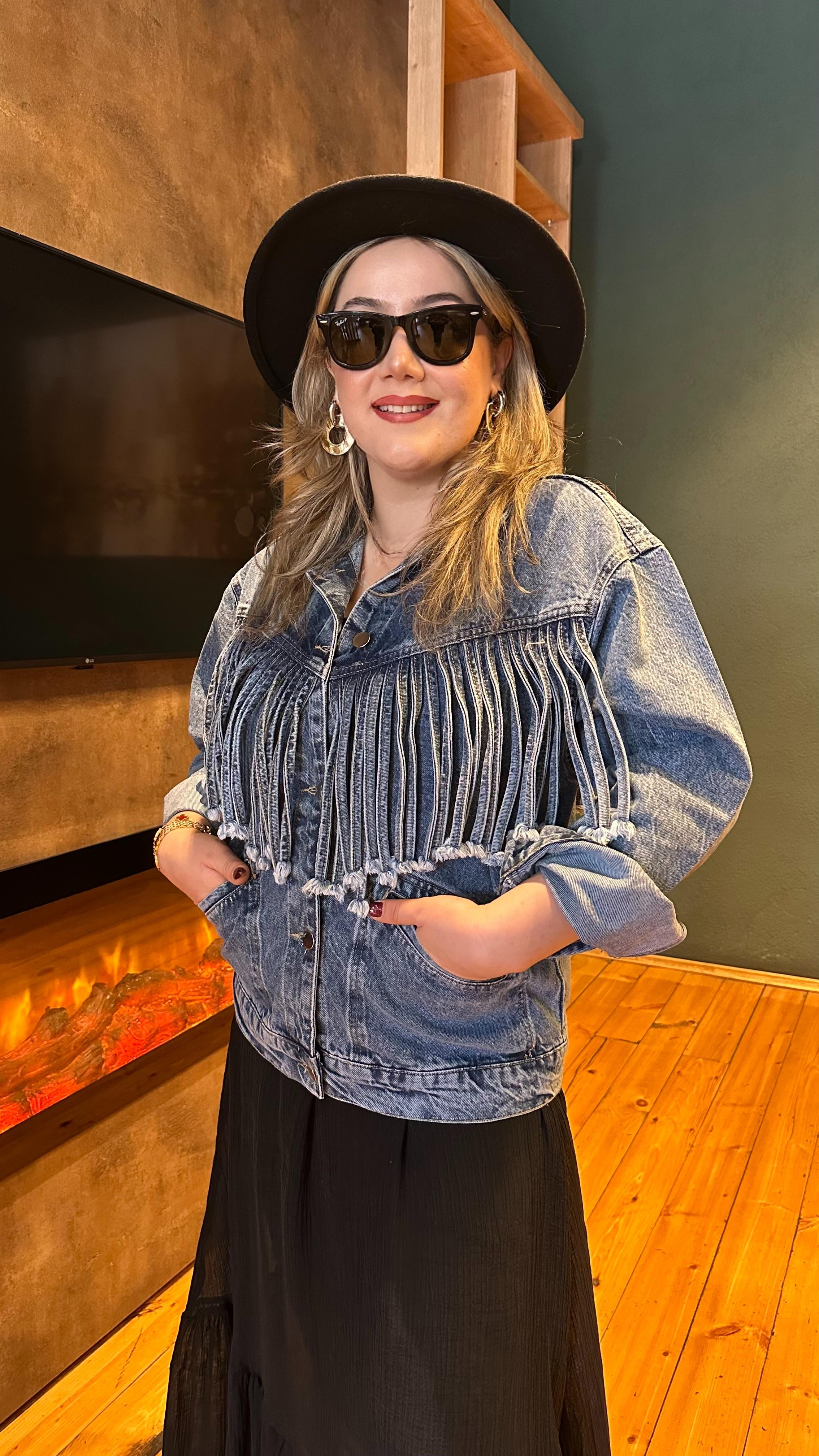 PÜSKÜLLÜ YANDAN CEP DETAYLI YIKAMA JEAN CEKET