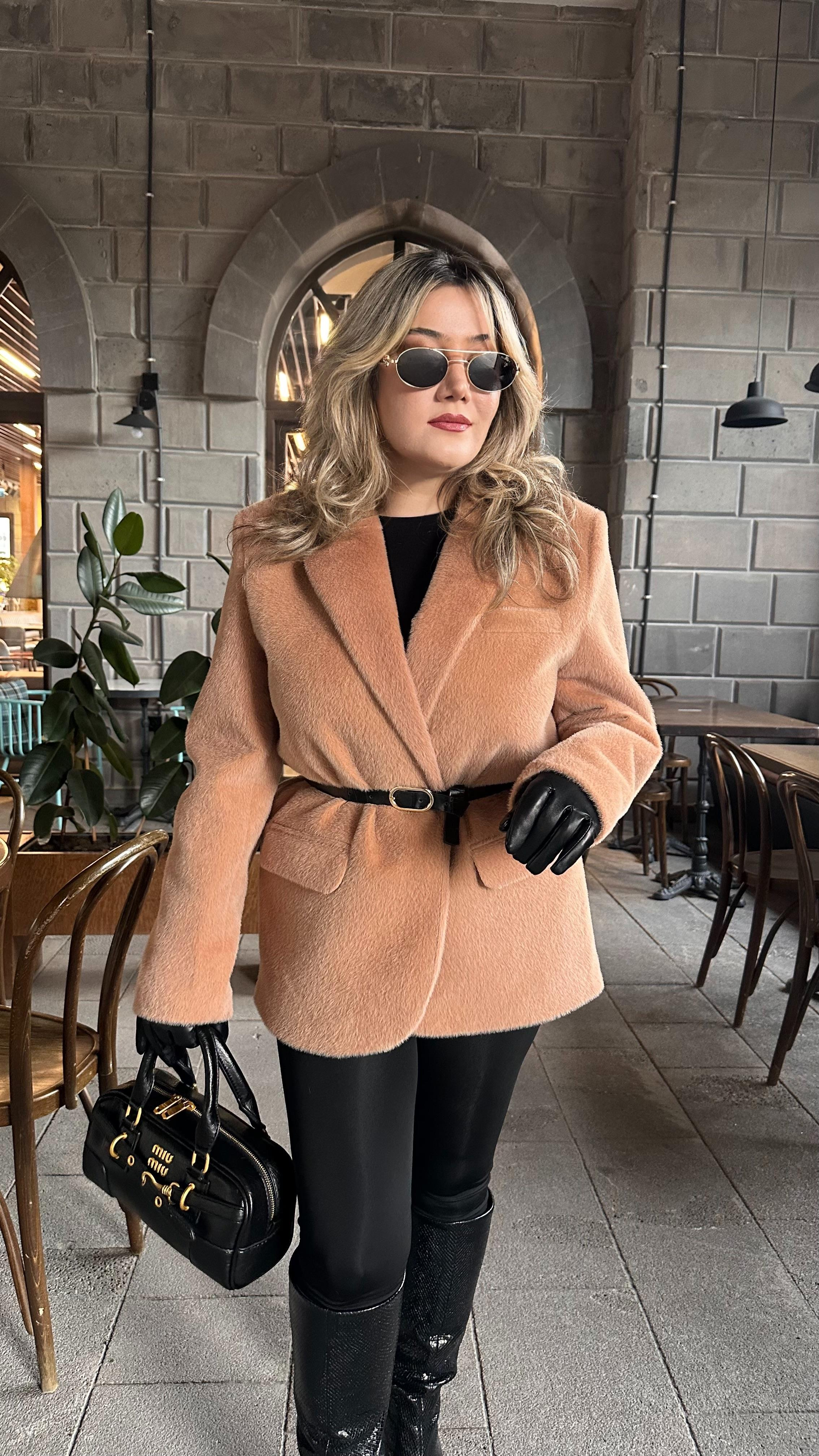 TAY TÜYLÜ KEMERLİ BLAZER CEKET CAMEL